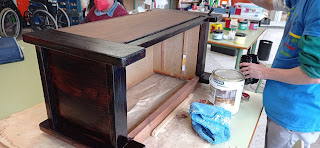 Les tres últimes imatges: Diferents fases de la restauració d'un moble que ens ha servit per guardar altres feines realitzades aquest any.